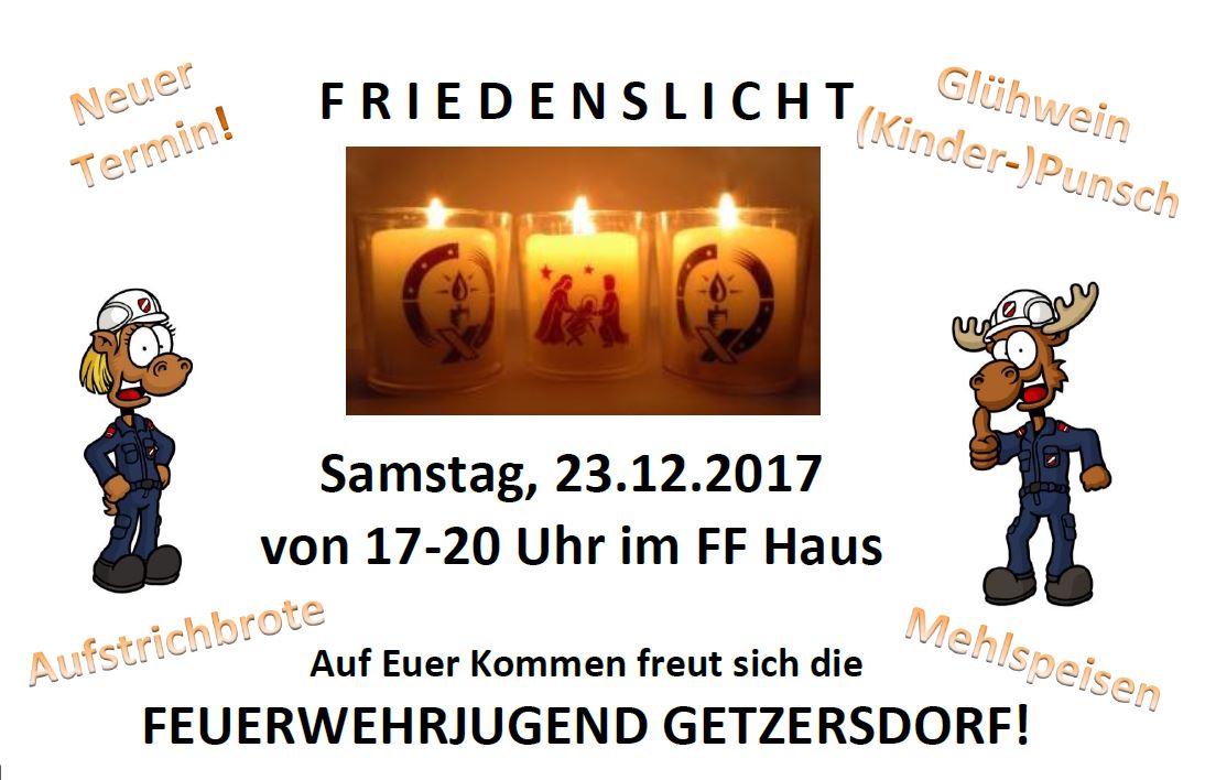 Terminankündigung zur heurigen Friedenslichtaktion im FF Haus. Achtung: Geänderter Termin. Heuer bereits am 23.12.2017. Besuchen Sie uns und verbringen Sie ein paar gemütliche Stunden.